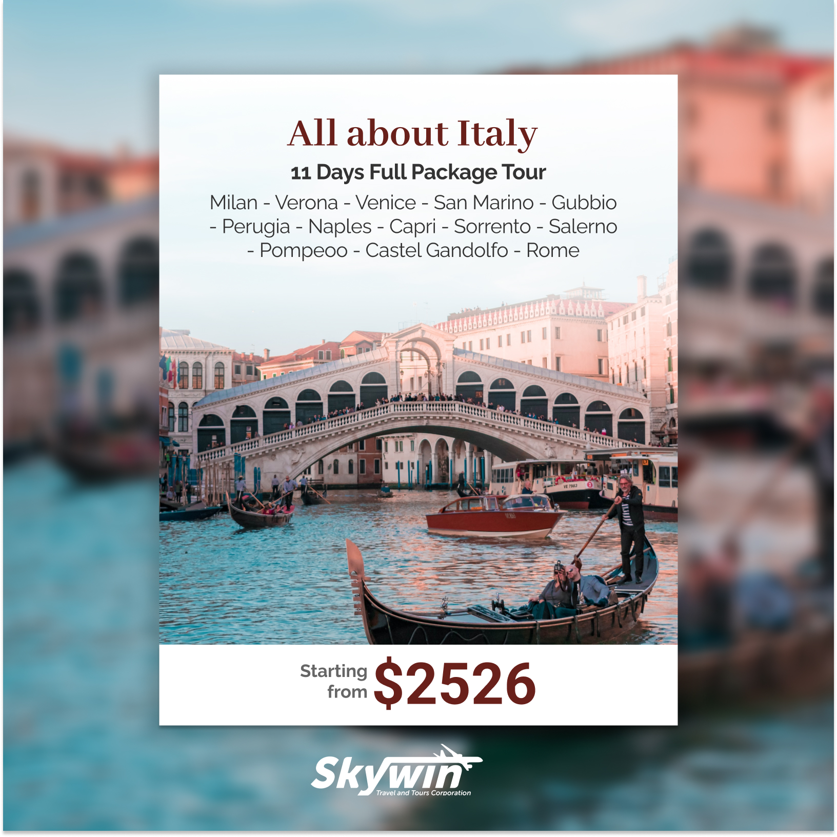 Skywin Travel is seeking engaging social media posts to attract new clients and keep current ones updated on their latest travel packages and exciting deals.